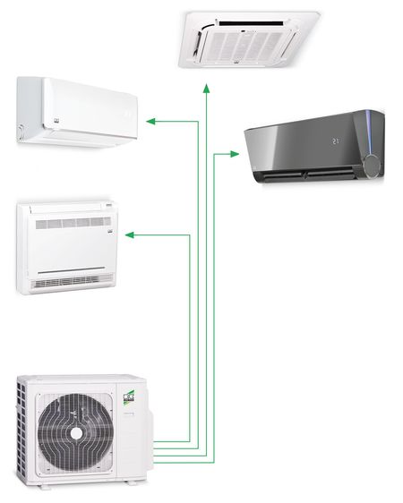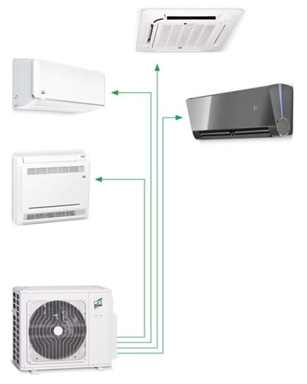 Die Serie MVT ist eine effiziente Inverter-Klimalösung die es ermöglicht bis zu 5 Innengeräte gleichzeitig zu betreiben. Dabei können Sie ganz nach Ihrem Bedarf zwischen Wandgeräten, Deckenkassetten und kompakten Wandtruhen kombinieren.